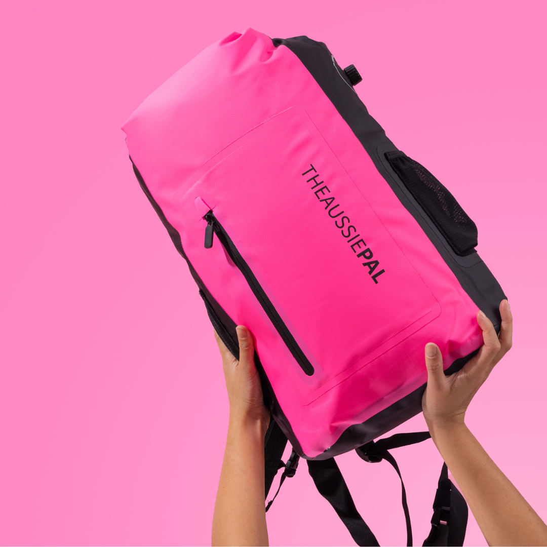 Comfortable padded straps for hands-free carrying, and a sturdy grab handle for easy lifting.