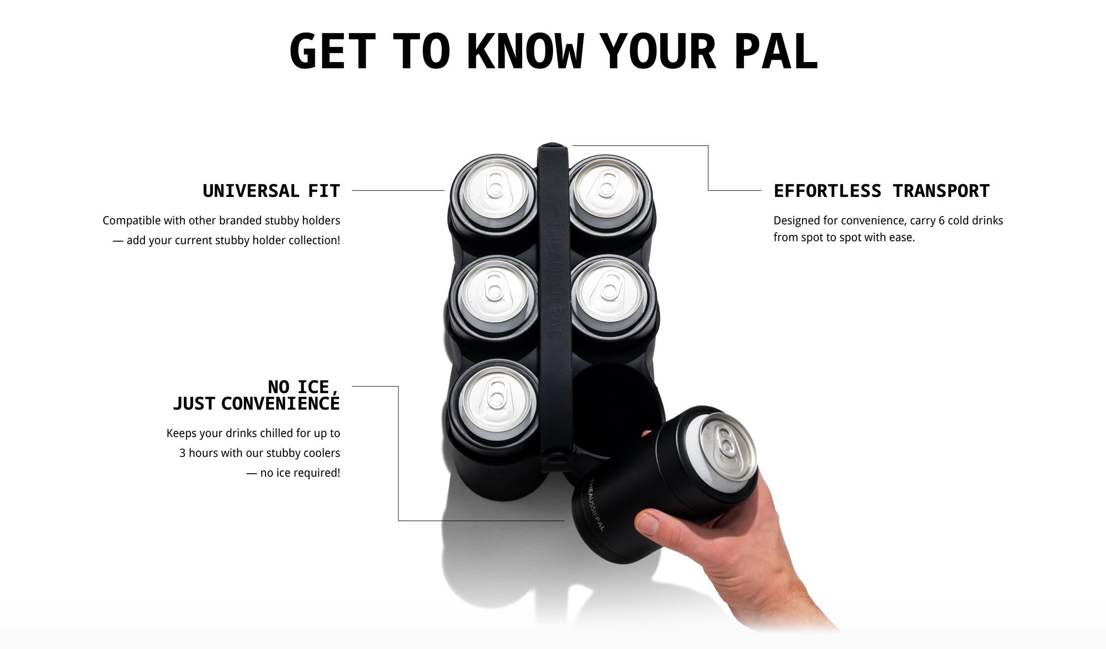 The 6PackPal features a unique, patent-protected design made from durable silicone, perfectly crafted to fit our insulated stubby holders.