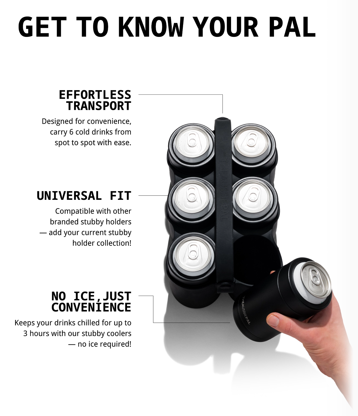 No more ice-related hassles—enjoy 3 hours of cold when paired with our insulated stubby holders.