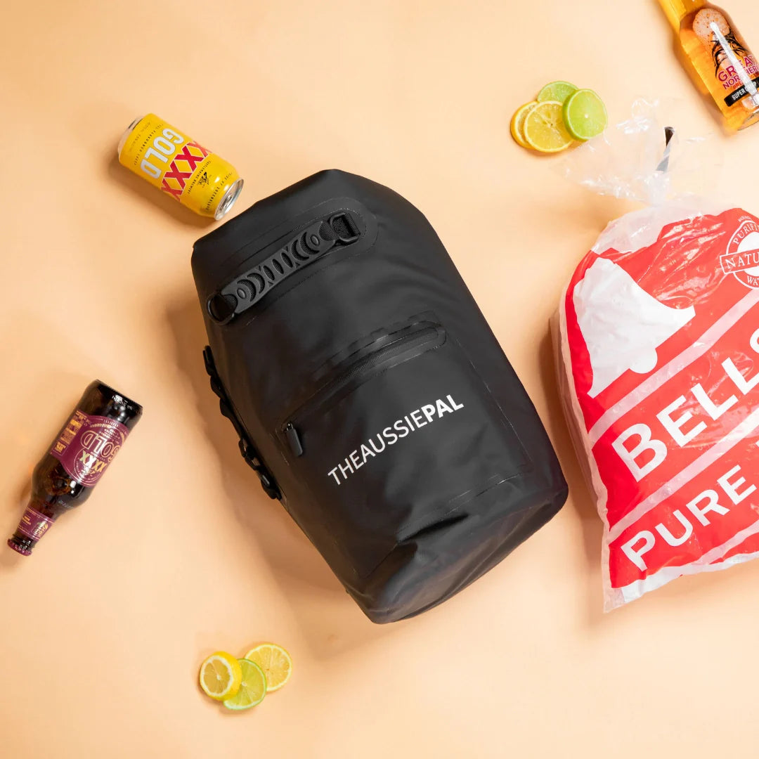 Our Insulated Cooler Bag can hold up to 12 drinks without the bulk of an esky. Unravel, add ice, brews, and fold with the secure roll strap. It keeps drinks cold for up to 12 hours with high-tech insulation and is waterproof inside and out. Plus, it comes with a shoulder strap for hands-free carrying.