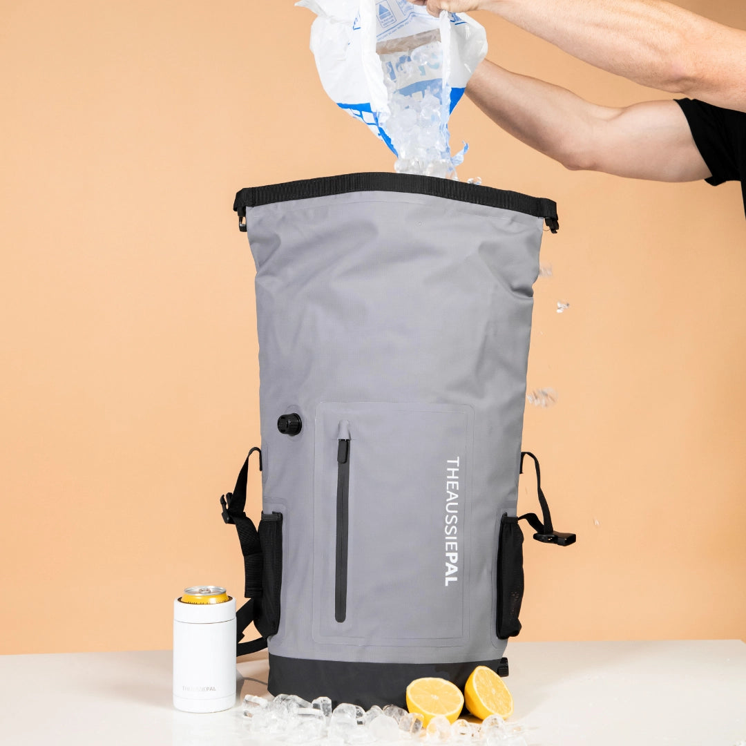You’ve got it in the bag, mate! Grab one of our epic Insulated Cooler Booze Bags and easily pack up to 30 brews or other cold drinks without the bulky awkwardness of an esky. Simply unravel the bag, drop in some ice, add your brews and fold in the cold with the secure roll strap. With ice, this baby keeps drinks frosty cold for up to 24-hours due to the high-tech insulation which also keeps it waterproof inside and out, so you won’t get any annoying leaks when on the go. It’s even got padded backpack straps and a chest strap support so you can carry your frosty friends in hands-free comfort.